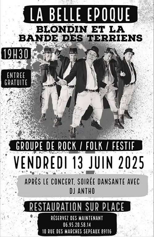 Concert avec Blondin et la Bande des terriens (rock, folk, festif) + soirée dansante avec DJ Antho – Sépeaux (La Belle Epoque) (affiche de l’événement)